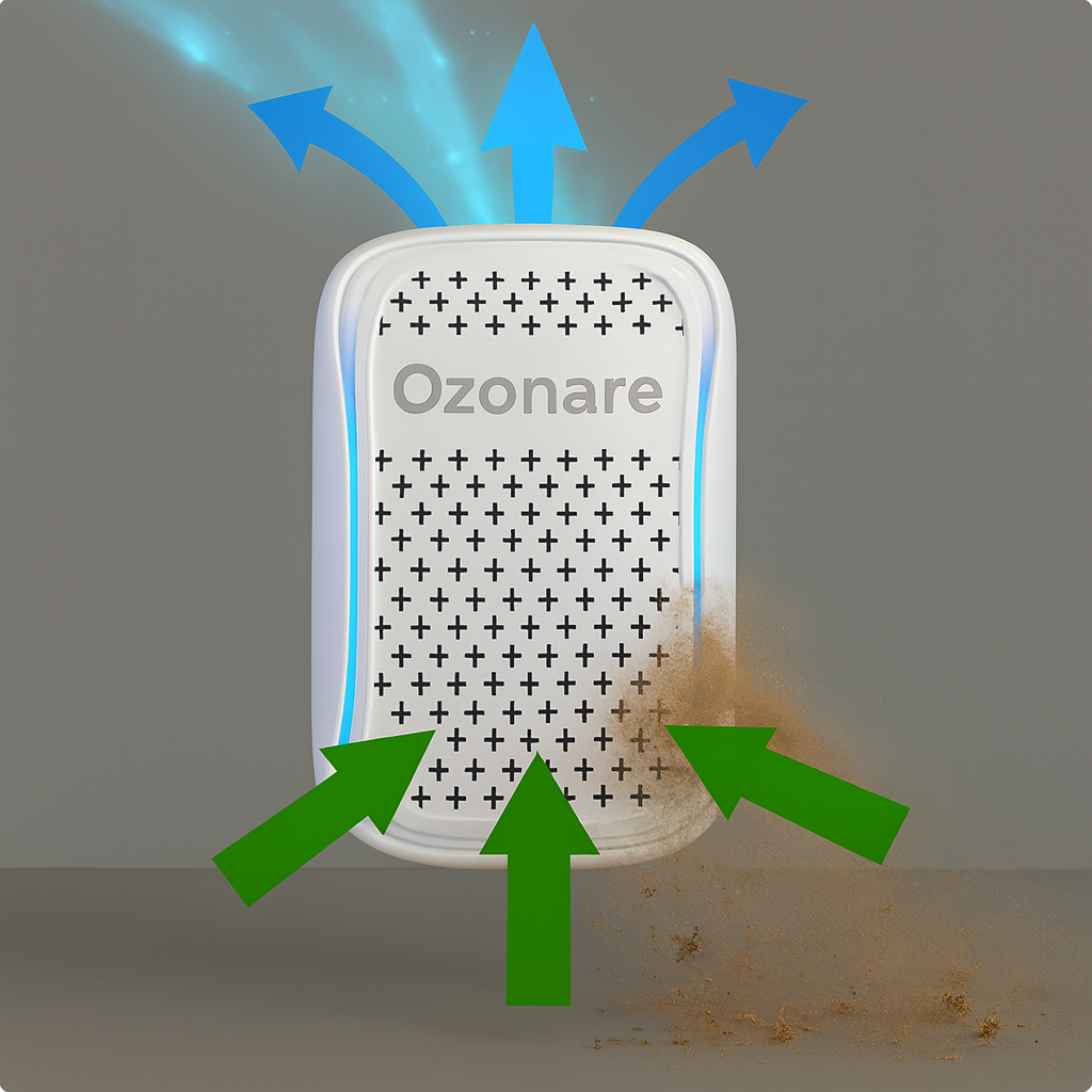 Ozonare™ använder negativ jonteknik för att neutralisera svävande damm, pollen och andra allergener direkt i luften. Den är helt filterfri, underhållsfri och säker att använda i sovrum, barnrum och hemmakontor.